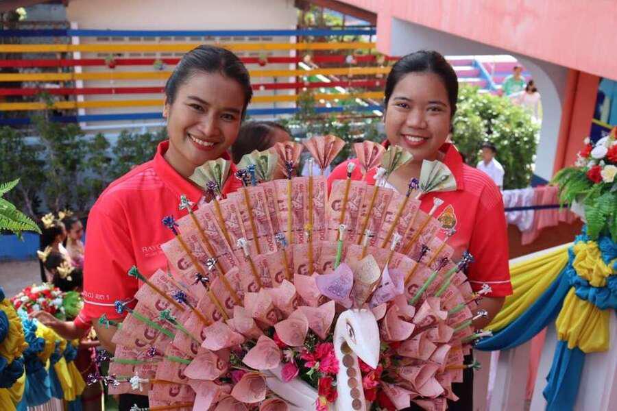 กิจกรรมทอดผ้าป่าสามัคคีเพื่อการศึกษา เพื่อหารายได้สมทบทุนงบประมาณจ้างครูและบุคลากรทางการศึกษา