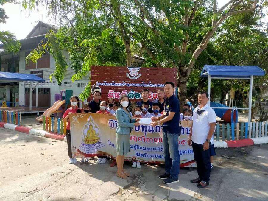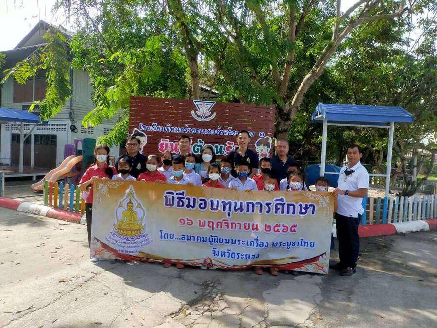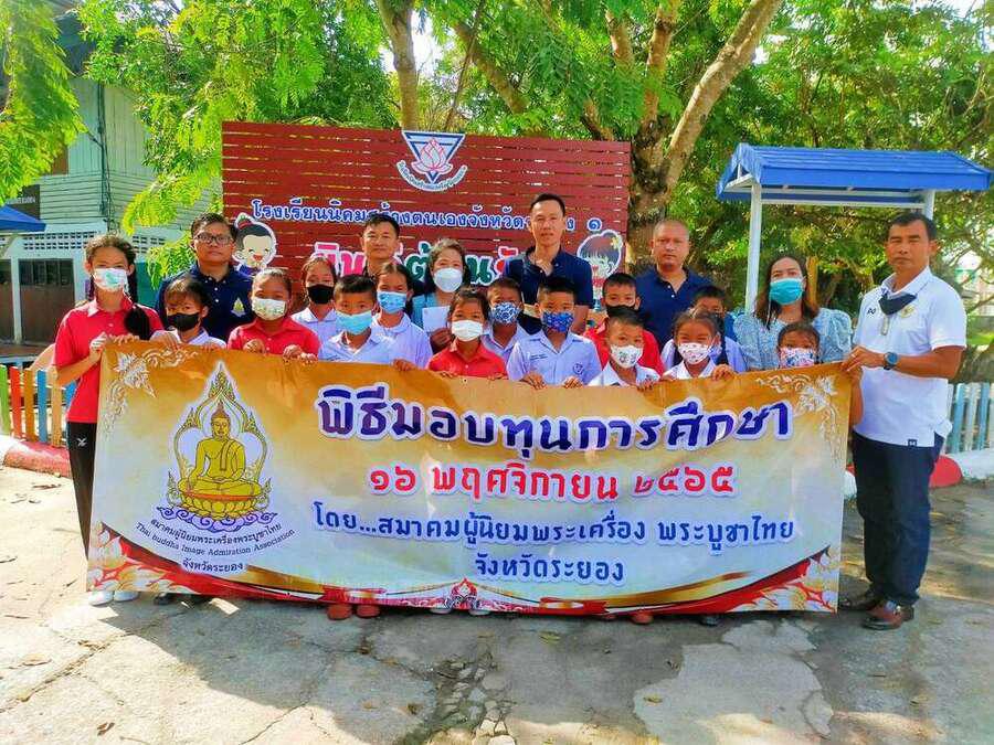 สมาคมผู้นิยมพระเครื่องพระบูชาไทย จังหวัดระยอง นำโดย คุณฐานุทัศน์ จันทร์อารักษ์ (นัย ไอยรา) ประธานฯ จังหวัดระยอง และทีมงาน ที่มอบทุนการศึกษาสำหรับนักเรียนที่ยากจนแต่เรียนดี