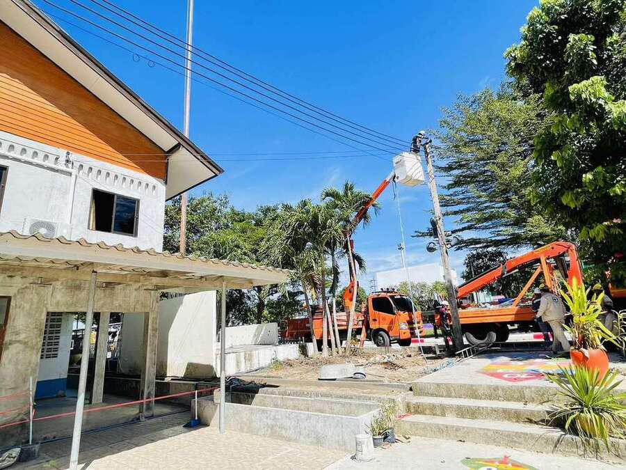 เทศบาลตำบลมาบข่า เข้ามาดำเนินการปรับเสาไฟฟ้าให้ตรง พร้อมทั้งตัดแต่งกิ่งไม้บริเวณรอบ ๆ สายไฟ เพื่อความปลอดภัยภายในโรงเรียน ทางโรงเรียนนิคมฯ 1