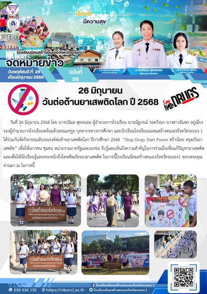 กิจกรรมเดินรณรงค์ต่อต้านยาเสพติดโลก ปีการศึกษา 2568 ?Stop Drugs Start Power สร้างไทย หยุดภัยยาเสพติด?