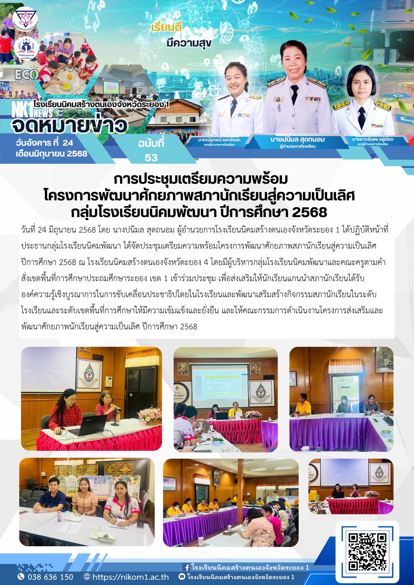 ประชุมเตรียมความพร้อมโครงการพัฒนาศักยภาพสภานักเรียนสู่ความเป็นเลิศ ปีการศึกษา 2568 ณ โรงเรียนนิคมสร้างตนเองจังหวัดะยอง 4