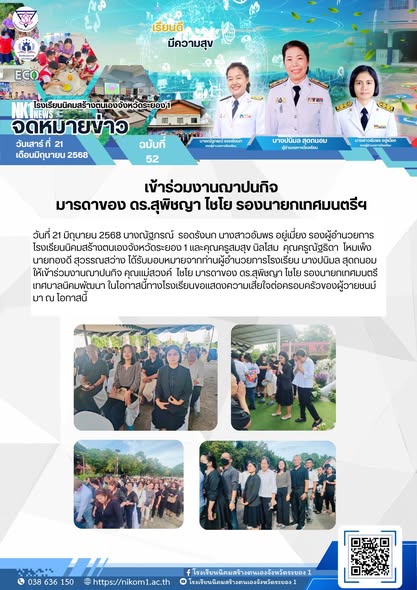 เข้าร่วมงานฌาปนกิจ คุณแม่สวงค์ ไชโย มารดาของ ดร.สุพิชญา ไชโย รองนายกเทศมนตรีเทศบาลนิคมพัฒนา