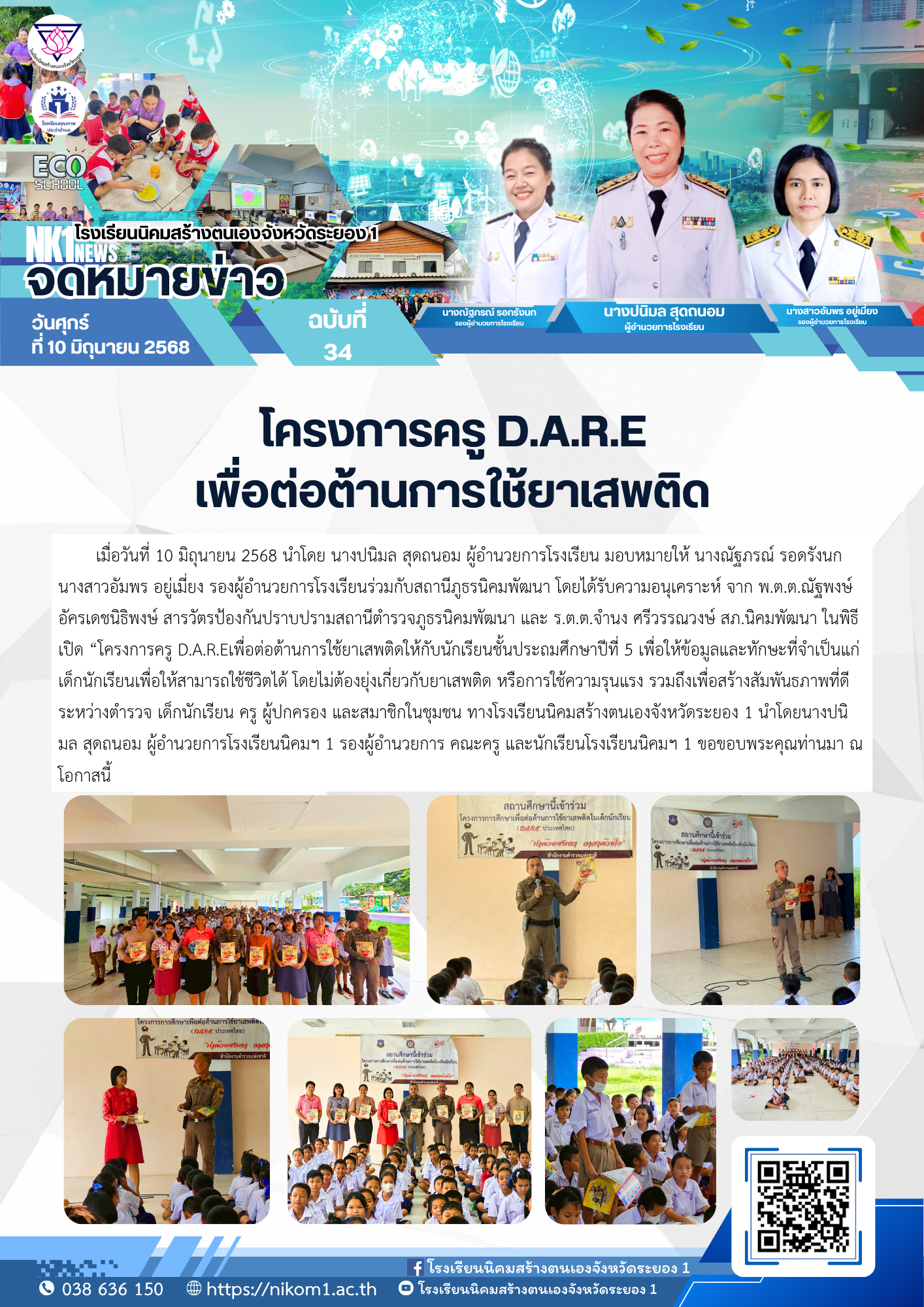 • ขอแสดงความยินดีและชื่นชมกับเด็กหญิงพิชญา สีบุญ ชั้นประถมศึกษาปีที่ 2 ที่ได้รับรางวัลระดับเหรียญทอง วิชาวิทยาศาสตร์ ชั้นประถมศึกษาปีที่ 2 ในโครงการประเมินและพัฒนาสู่ความเป็นเลิศทางคณิตศาสตร์และวิท